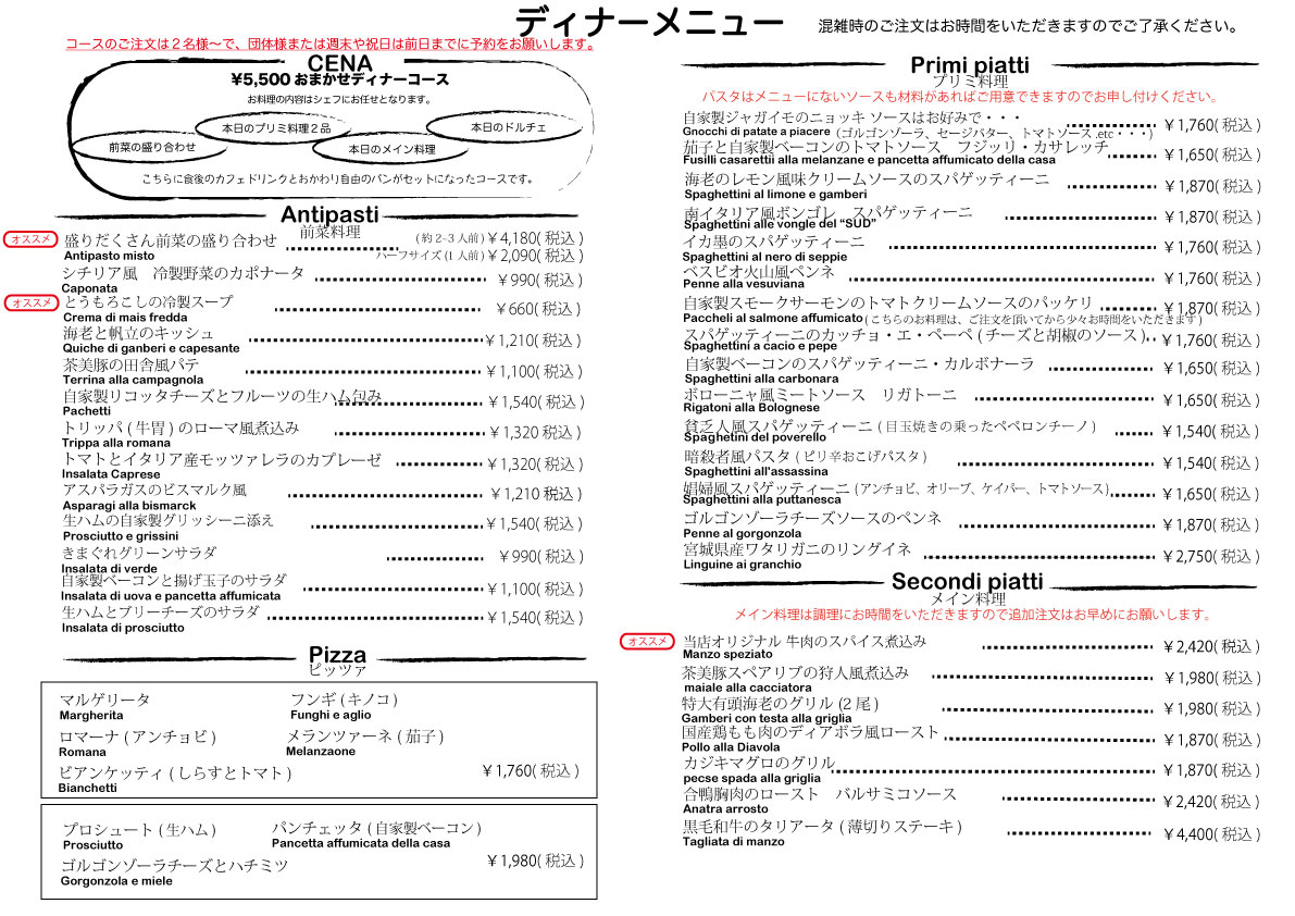 ディナーメニュー