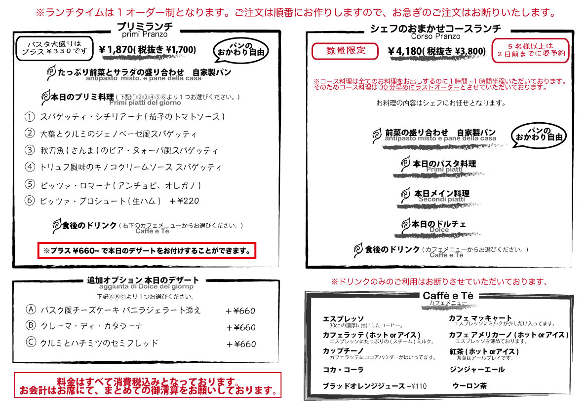 9/25 本日のメニュー ※本日のランチは13:30ラストオーダーです。
