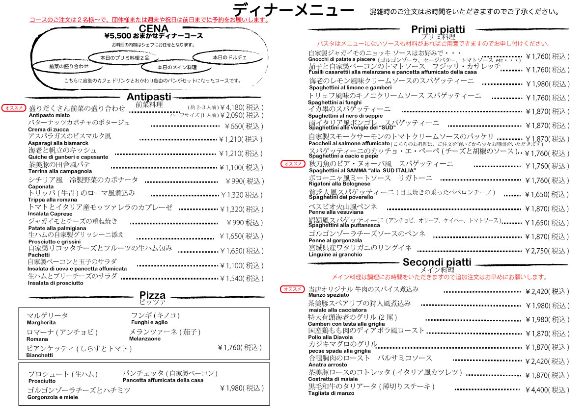 ディナータイムは7名様以上の場合、2日前までに要予約で